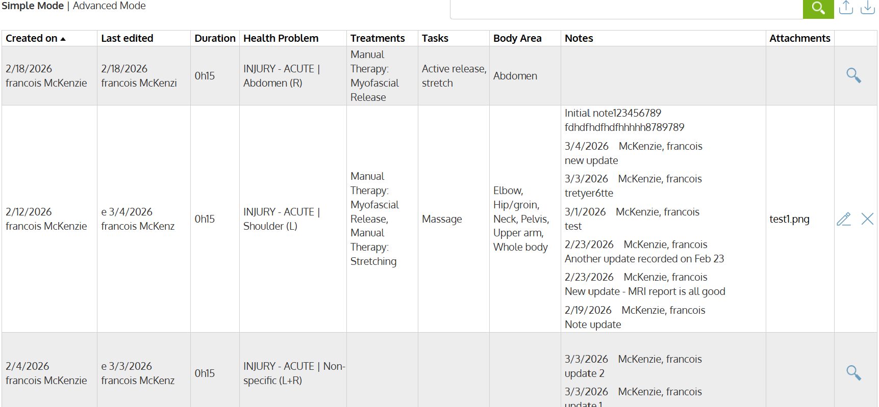 Notes can be viewed in Simple or Advanced modes presented below.
